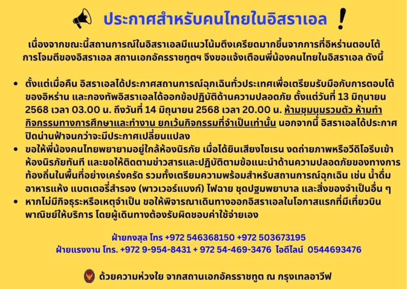 อ้าว .. ก็ ชื่นชมกันอยู่ดี ๆ เมื่อวันที่ 27 พฤษภาคม 2568 จัดงานครบรอบ 77 ปี สถาปนา ประเทศอิสราเอล ณ โรงแรม คอลลาส ถนนสุขุมวิท มีการเชิญรางวัลมิตรภาพไทย-อิสราเอล ประจำปี 2568 โดยมี เอกอัครราชทูต วิสามัญ อิสราเอล ประจำประเทศไทย ผู้มีอำนาจเต็ม นางออร์นา ซากิฟ เป็นผู้มอบรางวัล ด้วยความปลื้มปิติยินดี เป็นมิตรไมตรี กันมา ร่วม 60 กว่าปี มีความสัมพันธ์ ทางการทูต สมัยพระเจ้าอยู่หัวรัชกาลที่ 9 พัฒนาหุบกระพง ขนกันมา ต้นทับทิม ช่วยกัน จนตอนหลังนี่ เอาคนงานไทย ไปทำงานภาคเกษตร ได้เงินได้ทองกันมา ส่งลูกส่งเต้าเรียนหนังสือ เอาแต่คนไทย คนประเทศอื่นไม่เอา กลับมา เป็นไกด์อิสราเอลกันตั้งหลายคน เยอะแยะ ตายไปก็มี ..